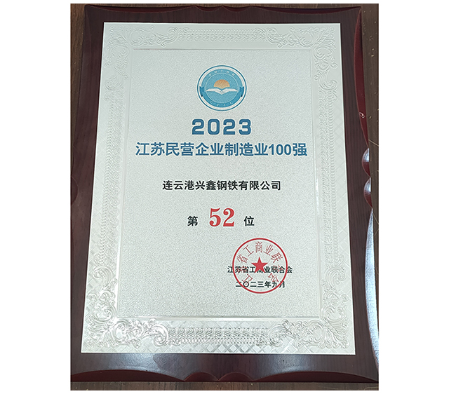 2023year Top 100 private enterprises in Jiangsu manufacturing industry